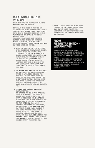 - TACTICAL FIGHTER WEAPONS CENTER - A full set of extra weapon tags, firearm-related items, and other rules regarding firearms, for groups that want more weapon variation.