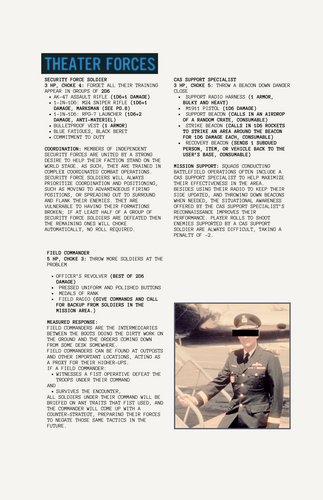 - EXPANDED MILITARY OPERATIONS CODEX - A collection of new enemies consisting of military ground assets and hardware that fit together for more tactical combat scenarios.