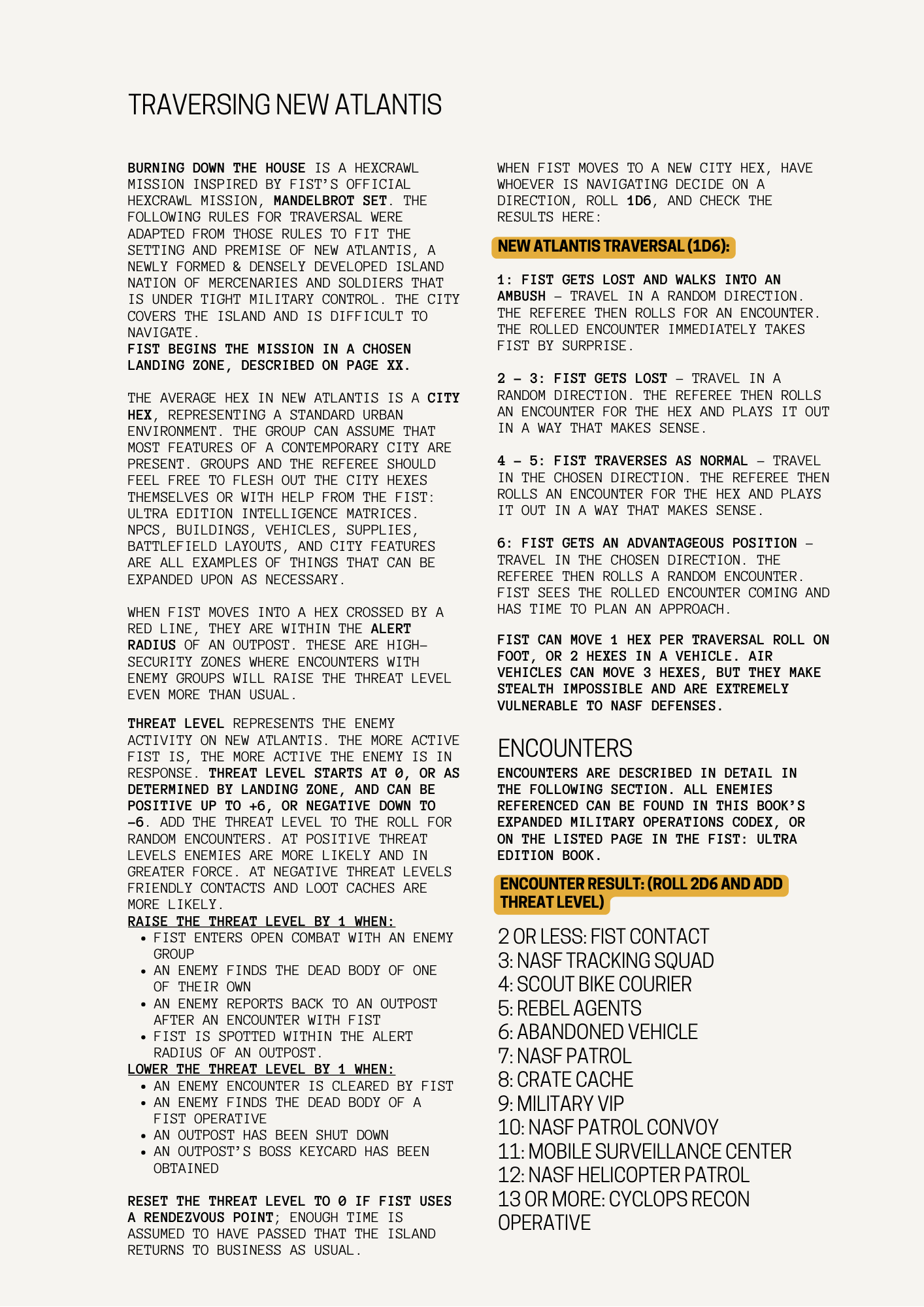 - BURNING DOWN THE HOUSE - A mission that wraps everything into one campaign mission, a hexcrawl in an island micronation to stop dangerous futuristic weapons from falling into the wrong hands.